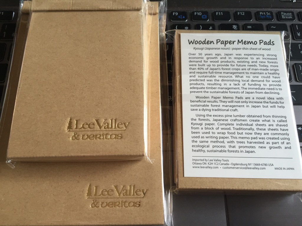 日本産の経木を使用したメモ帳を、